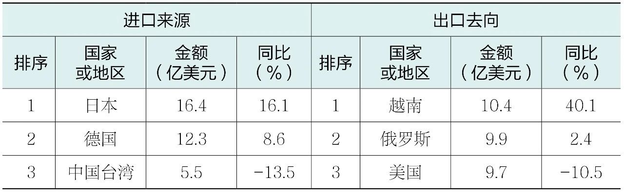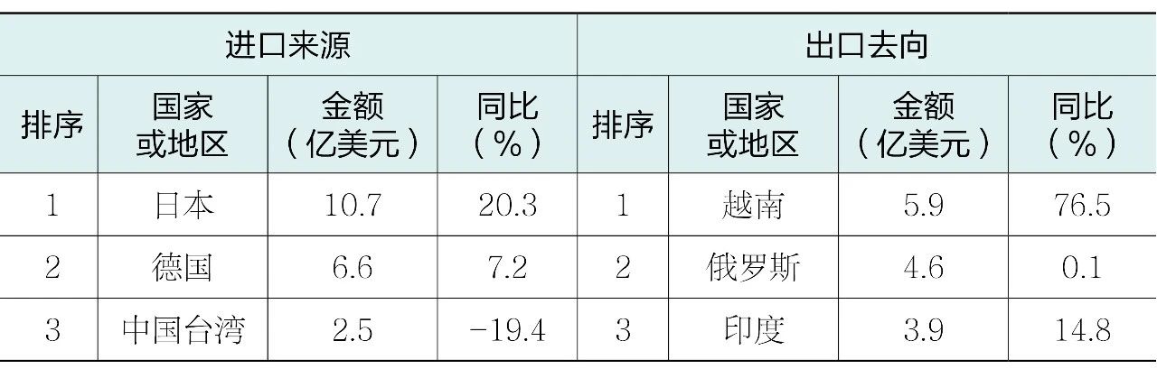表5 2025年上半年機床工具商品進口來源和出口去向排名前三的情況
