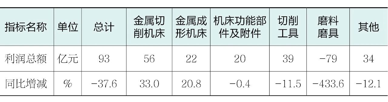 表2 2025年上半年機床工具行業及主要分行業的利潤總額情況