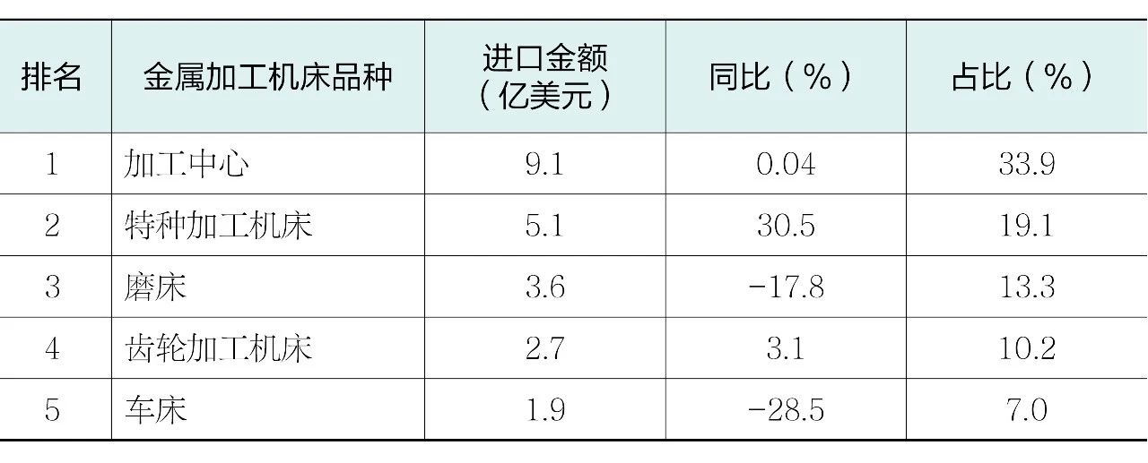 表8 2025年上半年進口金額排前五位的金屬加工機床品種
