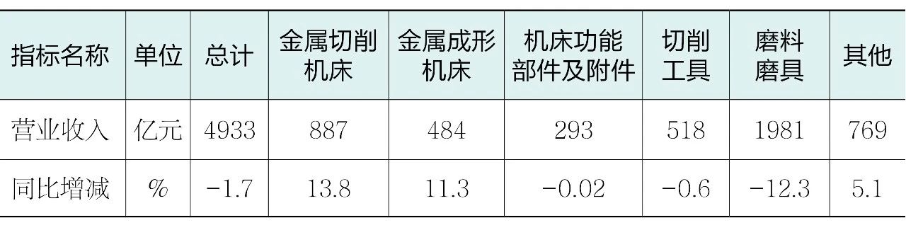 表1 2025年上半年機床工具行業及主要分行業的營業收入情況